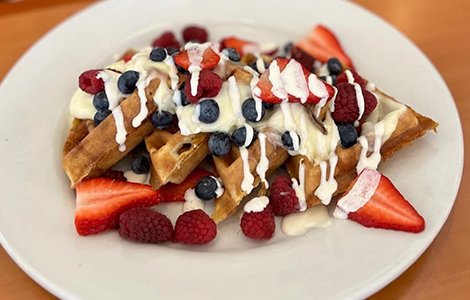 Breakfast (mornings): pancakes, skillets, omelets, coffee & fresh juice.